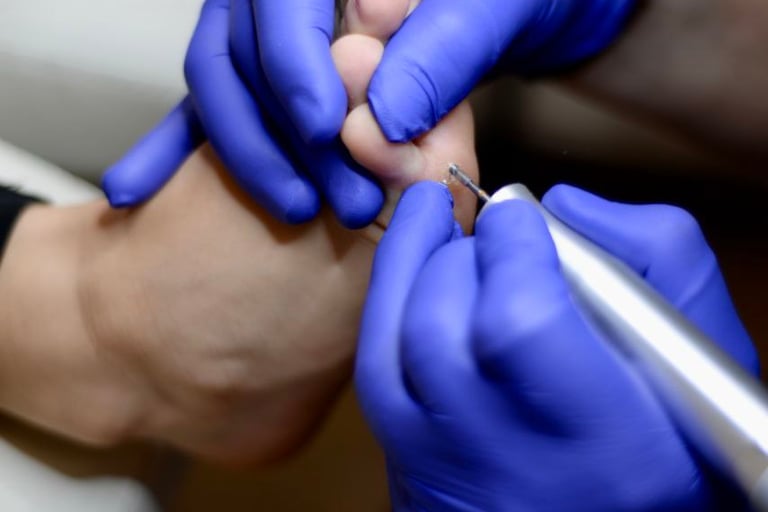 Aparatinį pedikiūrą atlieka tik patyręs podologas, turintis medicininių žinių gydant ir prižiūrint pacientus, sergančius diabetinės pėdos sindromu.