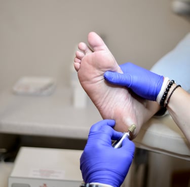 Diabetinės pėdos sindromas yra sunki cukrinio diabeto komplikacija. Tokių ligonių pėdoms reikia ypatingos priežiūros, nes dėl pablogėjusio jautrumo ir sumažėjusios pagrindinės kraujotakos apatinių galūnių arterijose bet koks odos pažeidimas gyja ilgai. Deja, netinkamai prižiūrint pėdas ir ignoruojant gydytojo rekomendacijas, visa tai gali paskatinti tolimesnį žaizdų užkrėtimą, opų atsiradimą ir gangrenos vystymąsi. Pacientai turėtų atkreipti ypatingą dėmesį į batus. Daugeliu atvejų opų atsiradimą provokuojantis veiksnys yra batų trinimas arba spaudimas. Teisingai parinkus terapinius batus, žymiai pagreitėja gijimo procesas. Pacientams kartais sunku patiems pasirūpinti savo pėdomis, nes sergantiems cukriniu diabetu dažniausiai kūno svoris būna per didelis, pablogėjęs matymas, neurologiniai sutrikimai ir kt. Įaugę nagai, nuospaudos, grybelis, išsausėjusi pėdų oda, hiperkeratozė (nuospaudos, suragėjimai), nagų plokštelių patamsėjimas esant diabetinės pėdos sindromui reikalauja vizito pas specialistą – podologą.